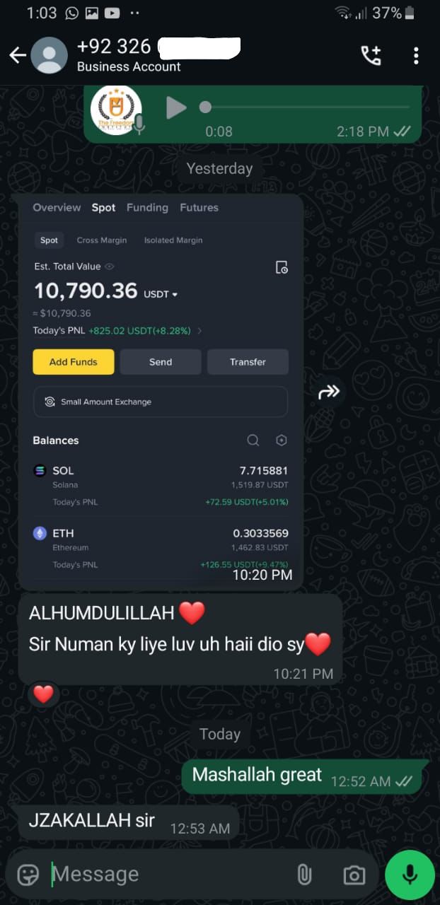 Today, I lead one of Pakistan’s most respected Institute for halal-based crypto trading education, with a growing community of over 250,000+ learners and followers across the globe. My mission is simple: